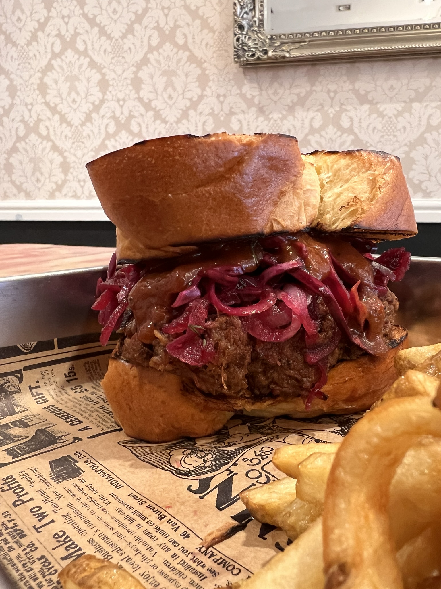 Olive oil mashed potato, onion jus